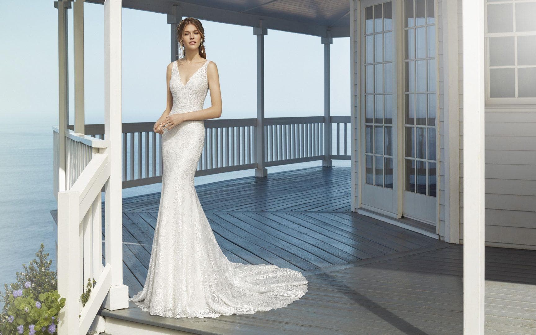 Cayena Gr.40 Nadine Fuchs vor 6 Jahren Perlenbesetztes Brautkleid im Meerjungfrau-Stil. V-Ausschnitt und tiefer Rücken mit Knopfleiste.